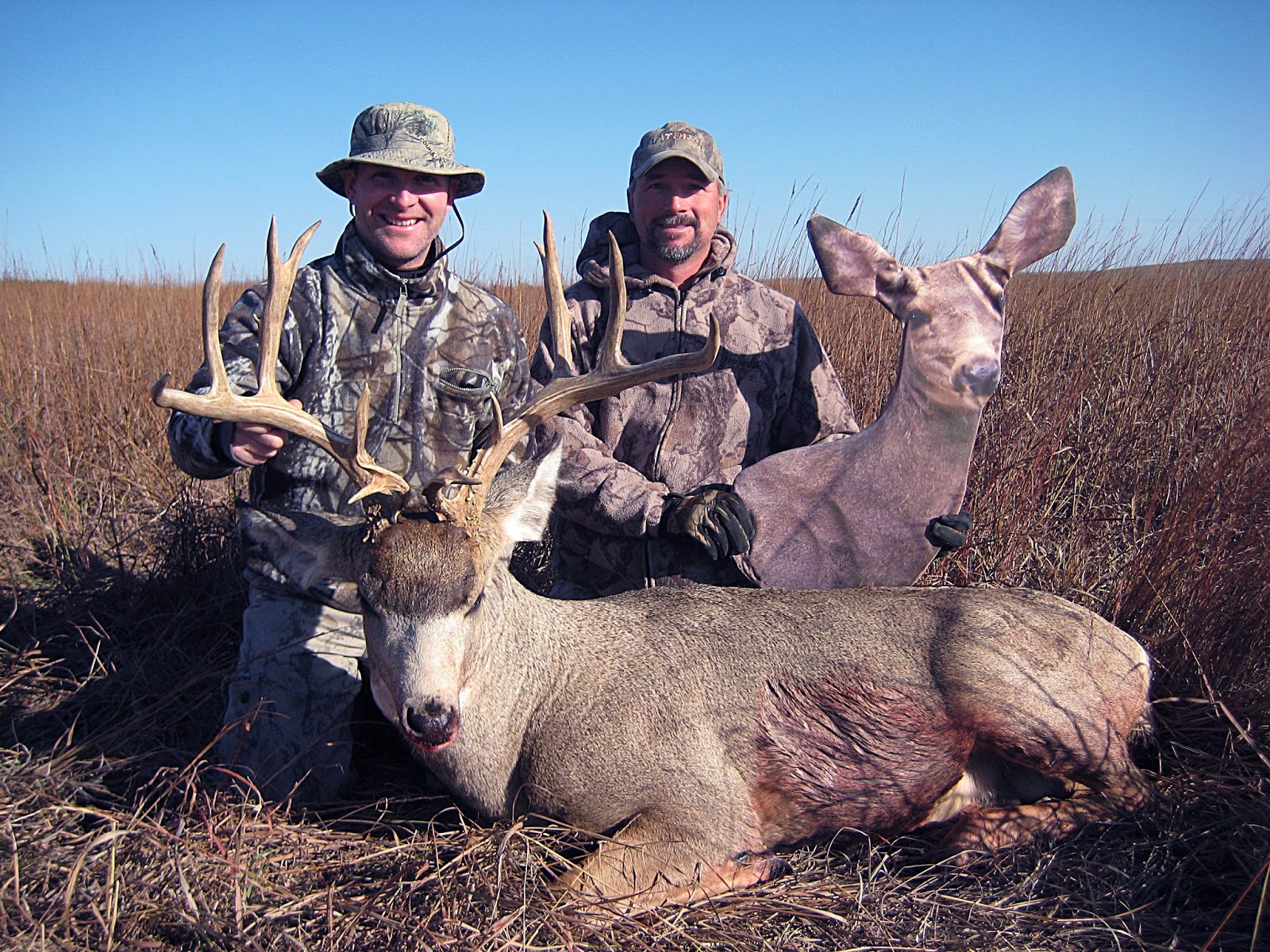 2012: Matt and Lucas Palmquist with 2 great mulies they shot in the same field approximately 30 minutes apart. Both bucks were inside of 20 yards when the arrow made impact. Click Pic To Enlarge. |