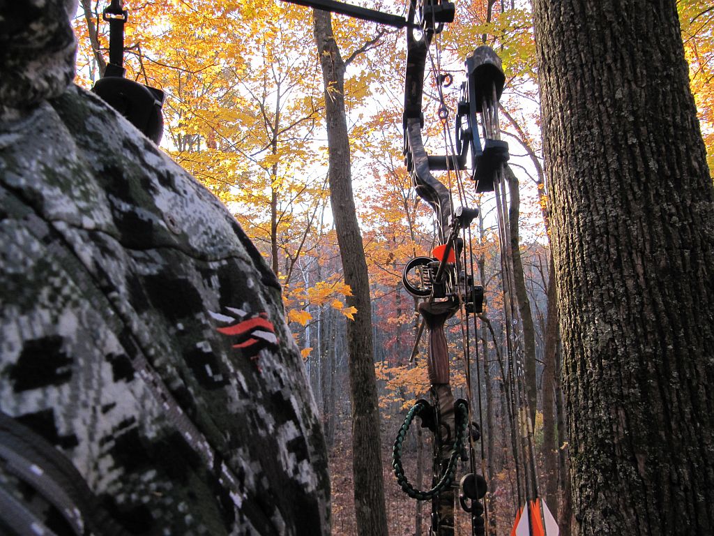 Here we are approaching my favorite time of the year, the last week of October, and I’m not even sure where I will hunt for the weekend and the whole first week of November! Saturday morning I went into an area that I have hunted for many years, essentially it is a proven spot that gave me a chance at something cruising. I didn’t have any luck so I was back in the truck and headed for more scouting. I crossed off two more areas on the map and was headed to a 3rd when I started finding some sign. The farther I got in the better it looked. I was finding plenty of scrapes and some rubs. Things were finally starting to come together. I always have a map, compass, and GPS while scouting. I take plenty of notes, and mark waypoints. These I can cross reference later on a big map to get the “whole picture”. Looking at my map I had circled a pinch point about a ½ mile from the truck. Cross country I wasn’t far from it, so I headed that way to check it out. As I got closer the scrapes became more frequent and bigger. I was starting to pass scrapes every few yards. All of a sudden I broke out into the funnel and was amazed. In the 120 yard section there were at least 20 scrapes, many rubs, and deer scat everywhere. It was the best sign I had found in years. I knew I needed to hunt here, and I should do it now. Unfortunately I had a prior commitment that night and had to hunt closer to home. I have this same commitment on the same night every year. Prior to this year I had been in the stand Sunday before light and hunted all day, I had the same intentions this year. Age must be catching up with me, because I decided at 5am that sleep sounded better then hunting!!! Waking up at 10 am I was kicking my own backside for not “sucking it up” and getting in the tree. Looking back it is the best decision I could have made. So I was headed for my “hotspot” by 11. Weather was mild, around 38° and sunny. I had ¾ mile to walk so I dressed only in my Sitka base layers. Everything else was packed into my pack. I strapped my climber and Heads up Decoy to the outside and was off.