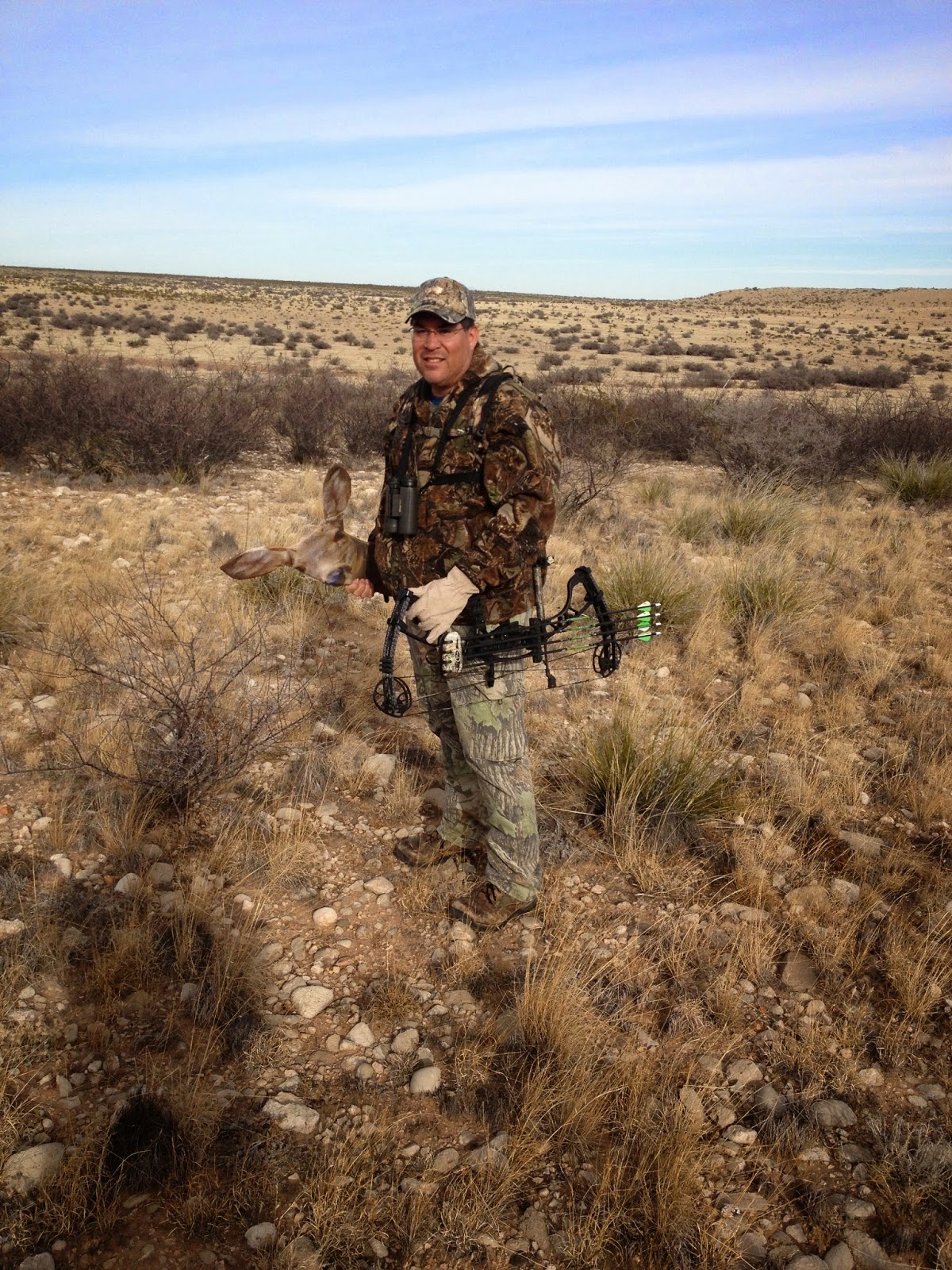 Opening day on January 1st, 2014 was going to be the test. We soon spotted a nice shooter buck chasing a small herd of does. I got the nod and went after them with the decoy in one hand and my bow in the other. When I got to within a couple of hundred yards, I started stalking with the decoy up and facing the direction of the deer. I came around a bush and had a doe bust me at about 60 yards. I just froze and held the decoy up in front of me. After about 20 seconds, she wagged her tail and continued feeding from right to left. Wow!!! The stalk would have been over right then and there if I hadn't been for my Heads Up Decoy! Although I never did get a shot on that stalk, it was the decoy’s first test and it won me over…Hands down. During the hunt, my hunting partner and I both used the decoy with good results. We were able to get much closer to the deer with the decoy. On another memorable stalk, we spotted a huge fork antlered buck tending a doe from about a mile away. This time it was my buddy’s turn to try the decoy. He’s a big guy about 6’ 3” and is he’s a traditional archer. Mule deer hunting in open desert with a recurve? Are you kidding me? Well, using that decoy, he easily got to within 100 yards of the buck and doe with very little cover while they kept a watchful eye on him. A young spike was with the buck and doe and decided to come visit the decoy and my partner. He walked to within 15 yards before he winded my partner and took off. That didn’t phase the buck and doe! He watched them feed and romance closer and closer to him. The deer were so calm with him and the decoy in plain sight that he even witnessed the buck mount the doe right there in front of him at 40 yards! Wowzers!!! Eventually, they winded him too and it was over. That clinched it for my buddy…he was a believer now.
