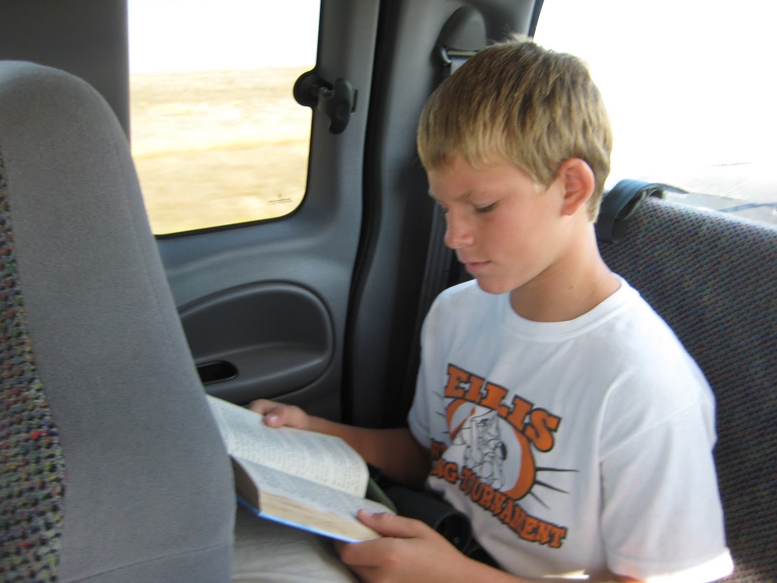 I was accompanied by my good friend Kent on our scouting trip to locate some goats for the KS early archery season, but today I got a bonus. Kent's son Dalton tagged along. To give you an idea of the driving involved, Dalton was able to get all his AR reading done for the week along with a nap or two as the distance was great and the goats were sparse at best.