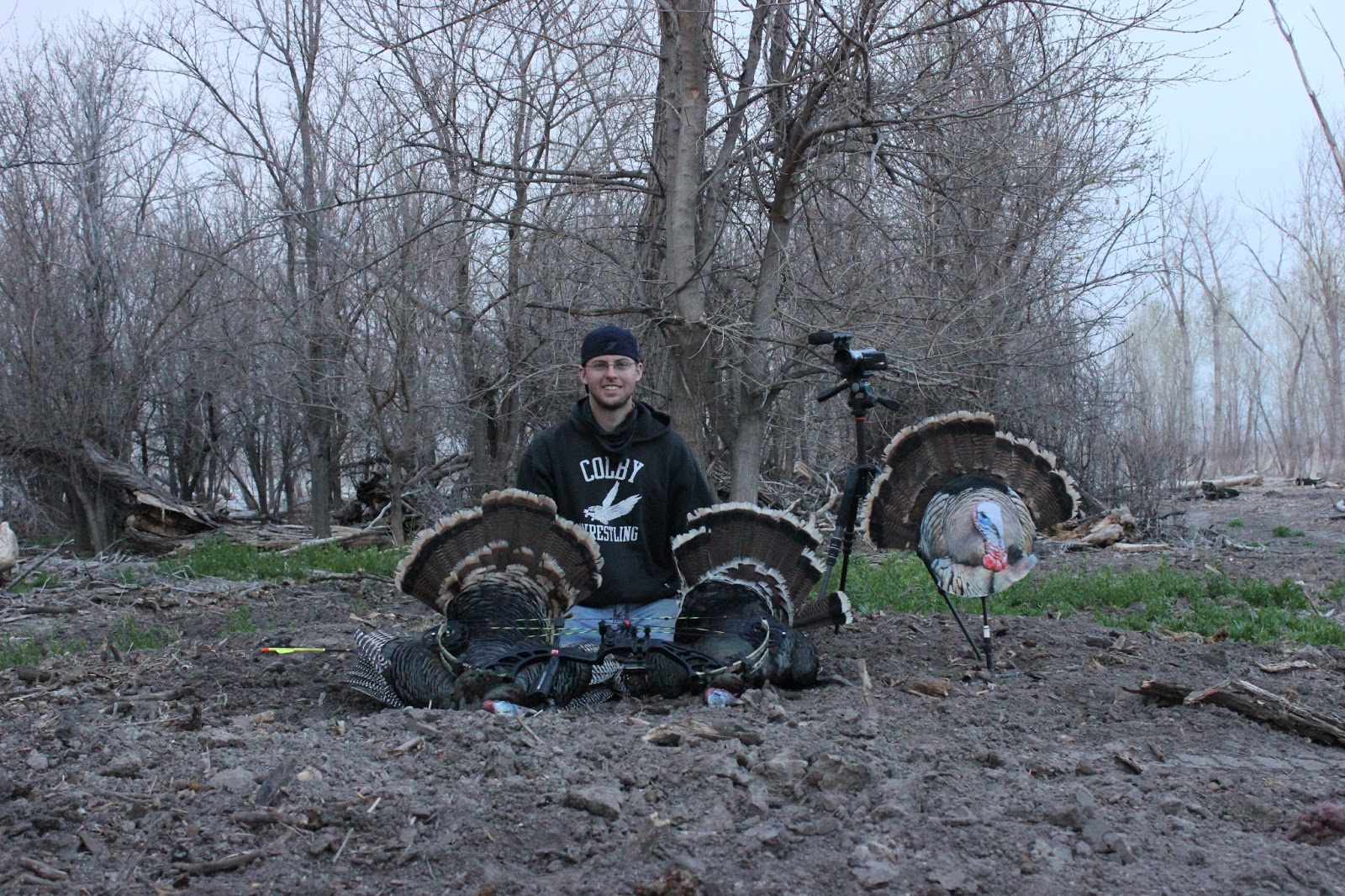 2012 started well for me with the harvest of my first double on turkeys which was self filmed with two different cameras. Though I have been criticized by some for my active participation in the shooting of young turkeys. I will continue to shoot Jakes as long as they come to my decoy, because it is really fun and man do they taste great. Due to the lack of a hunting partner at the time and my need to successfully capture my hunts on film, I did unfortunately shoot my turkeys out of a ground blind. But lucky me the Heads Up Decoy Tom Turkey works no matter how you use it.
