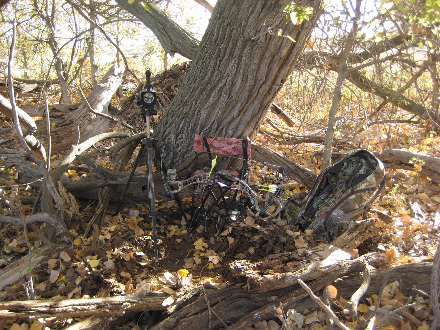 I managed to have some deer activity which lead a doe and her two fawns in my lap. They would feed and look up at the decoys, but she would not present a shot. Another doe appeared and slowly fed her way in the direction of the Heads Up Decoy. I was trying to film my hunt so there was an extra degree of difficulty trying to get footage and a shot. The second doe walked right into the decoy set and was standing quartering-to at 10yds or less from me. I was at full draw and let her have it. The arrow buried into her chest, entering in front of her shoulder and exiting behind the opposite shoulder. She piled up in about 60 yards. I was very happy.