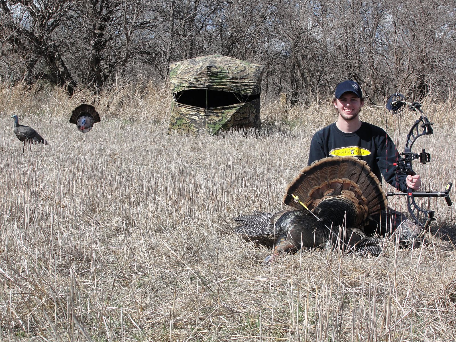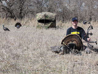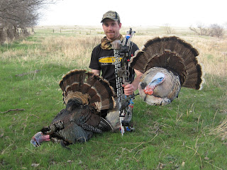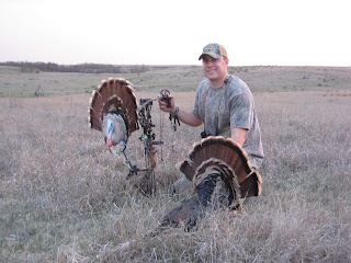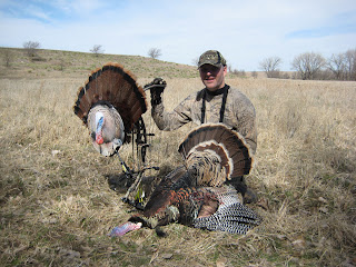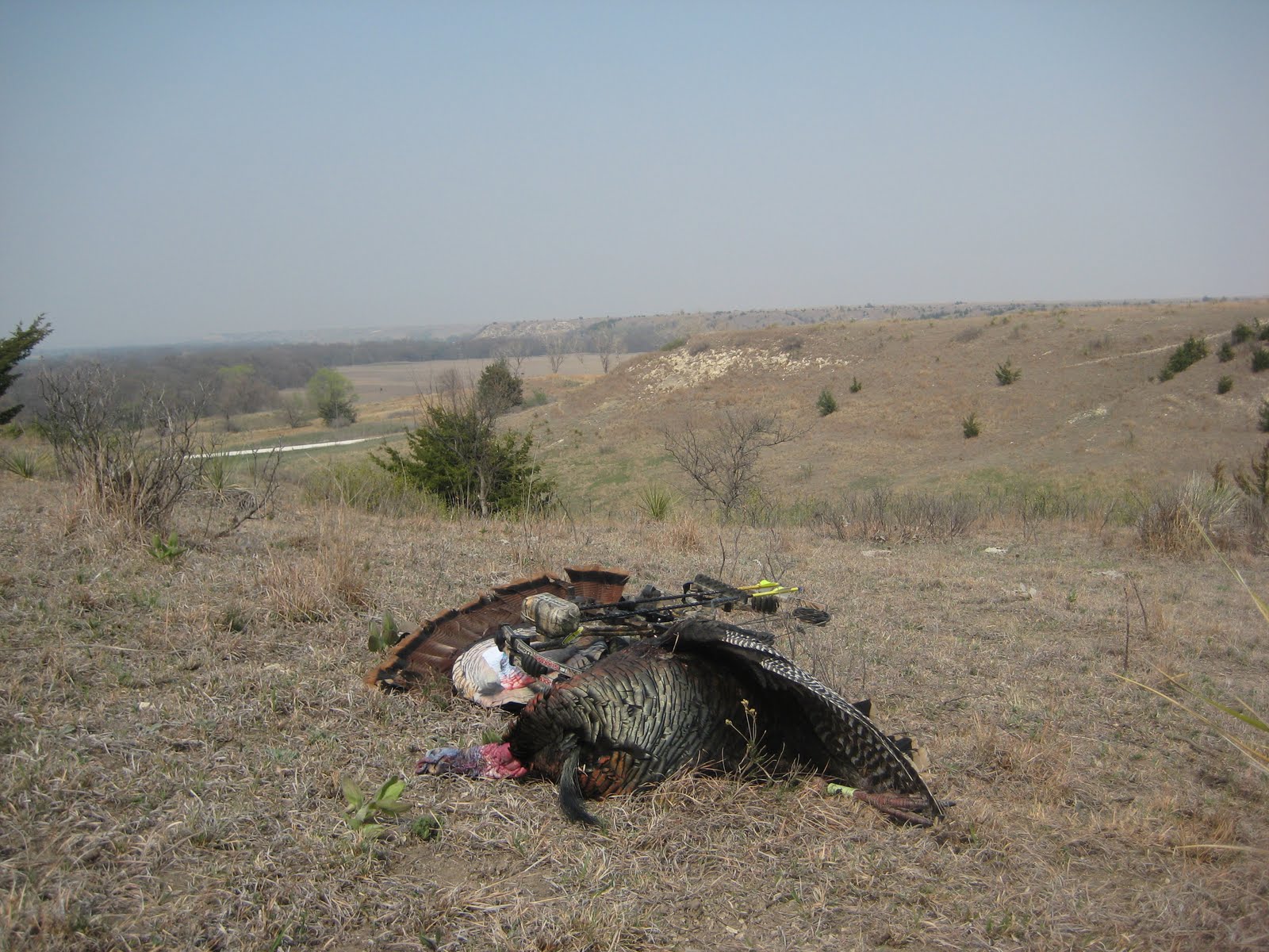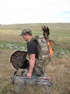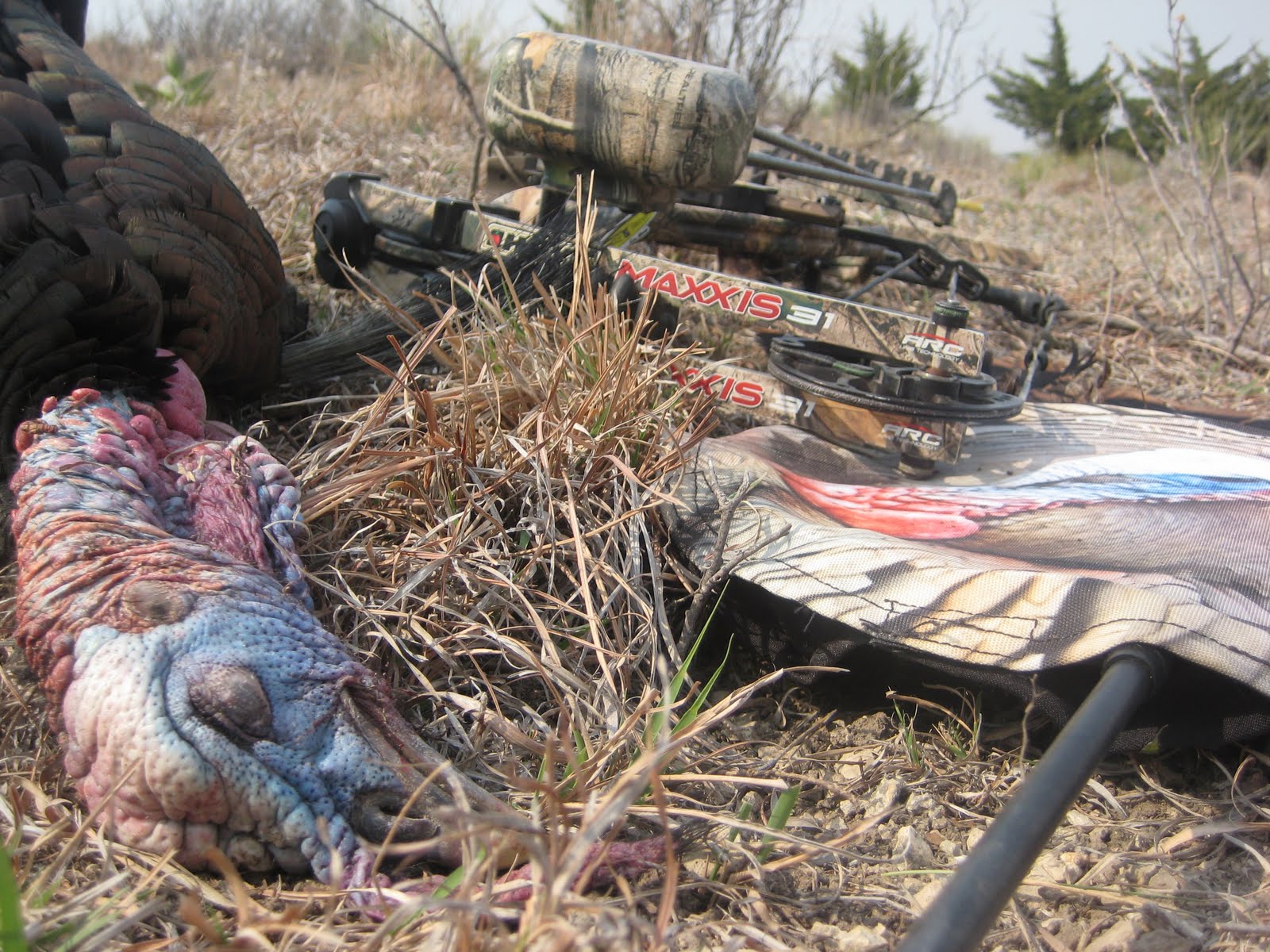 For myself, the 2011 KS archery turkey season ended on public ground April 13th with another memorable hunt. The short time in the field has been jammed packed with memorable moments, close encounters, and near misses. We have several pro staffers who have filled all their tags and a couple others with one tag to go. But to say the Heads Up Decoy Tom Turkey is a success is an understatement...it's deadly. We've decoyed birds from the blind and from the bowmount at an unheard of ratio. I have said from the beginning that there are decoys on the market more realistic looking than the Heads Up Decoy, but not more versatile and not nearly as fun.