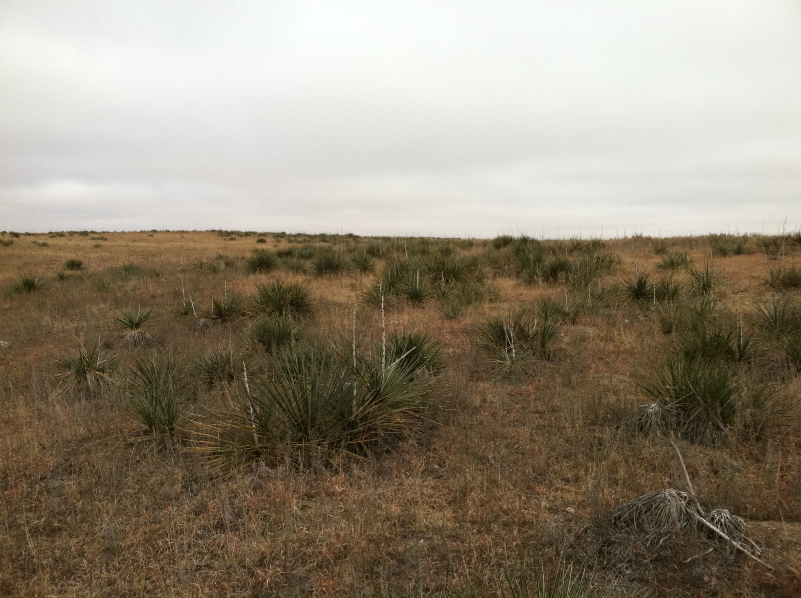 | My place of "hiding" the buck came just inside the small far right upper yucca...30 yards. |